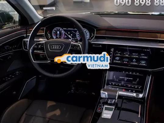 Audi A8L Quattro (55 TFSI) | 2 cầu Quattro. Giá xe: 5.299.000.000 Vnđ. - ---------------------------------. * Mẫu xe sedan hạng S duy nhất của Audi tại Việt Nam. * Nhập khẩu nguyên chiếc 100% từ Đức. * Bảo hành 03 năm không giới hạn km. * Xe có sẵn, Hỗ trợ giao xe toàn quốc. * Cam kết giá lăn bánh tốt nhất mọi thời điểm. - ---------------------------------------------------. Bảng màu tuỳ chọn ngoại thất của Audi A8L: - Audi A8 Đen: Đen Brilliant, Đơn sắc. - Audi A8 Đen: Đen Mythos, Ánh kim. - Audi A8 Trắng: Trắng Glacier, Ánh kim. - Audi A8 Xanh: Xanh Firmament, Ánh kim. - Audi A8 Nâu: Nâu Madeira, Ánh kim. - Audi A8 Xám: Xám Manhatta, Ánh kim. - Audi A8 Xám: Xám Chronos, Ánh kim. - ---------------------------------. Điểm nổi bật của Audi A8L: *Công nghệ nổi bật: - Hệ thống treo khí nén thích ứng. - Công nghệ Mild hybrid 48v. - Camera 360. - Cửa Hit, tính năng hỗ trợ đóng cửa. - Hệ thống kiểm soát hành trình. - Cảnh báo lệch làn. - Hỗ trợ đỗ xe tự động. - Hệ thống camera đa chức năng và cảm biến đỗ xe. - Sạc không dây chuẩn Qi. - Cốp xe chỉnh điện. - Cảm biến Ánh sáng; Cảm biến gạt mưa. - Điều hoà tự động 4 vùng. - Hiển thị thông tin trên kính chắn gió Head-up display (HUD). - Dàn âm thanh 3D Bang & Olufsen (23 loa cao cấp, bao gồm dàn loa 3D sống động, loa trung tâm và loa siêu trầm mạnh mẽ). - Hệ thống Chống trộm. - Bản đồ Navigation. - ---------------------------------. Thống số kỹ thuật cơ bản của Audi A8: *Động cơ & Hộp số: - Đông cơ: 3.0l Tăng áp kết hợp Mild hybrid 48v. - Công suất cực đại: 340 Hp/ 5.000 – 6.400 (hp)/rpm). - Momen xoắn cực đại: 500/1.370 – 4.500 (Nm/rpm). - Hộp số: 8 cấp tiptronic. - Dẫn động 2 cầu: Quattro (toàn thời gian, visai tự khoá). - Gia tốc 0-100km/h: 5,6s. - Tốc độ tối đa: 250 km/h. - Tiêu hao nhiên liệu hỗn hợp: 11,4 l/100km. - ----------------. *Kích thước: - Mâm xe: 20 inch. - Chiều dài cơ sở: 3128 mm. - Dài x Rộng x Cao: 5302 x 1945 x 1488 (mm). - Trọng lượng xe (kg): 1980 kg. - Khoang hành lý: 505 lít. - Dung tích bình xăng: 82 lít. - ----------------. *An toàn: Hệ thống 10 túi khí: Túi khí hành khách; Túi khí bên hông trước/sau; Túi khí rèm; Túi khí đầu. - ---------------------------------. Nhận thông tin Tư vấn và Báo giá, Hẹn lịch lái thử xe Audi A8, vui lòng liên hệ: Đại diện bán hàng Audi Việt Nam. Anh Quân | 090 898 8862. Xin chân thành cảm ơn! - ---------------------------------. #Audi #Audihcm #AudiA8 #A8sedan #a8plus #AudiA8L #A8audi. #GiaxeAudi #GiaXeAudiA8 #MuaxeAudi #XeAudiGiaTot #AnhQuanAudi. - ---------------------------------. - Tiktok: Https://www.tiktok.com/@audi. Anhquan. - Youtube: Https://www.youtube.com/@anhquanAudi.