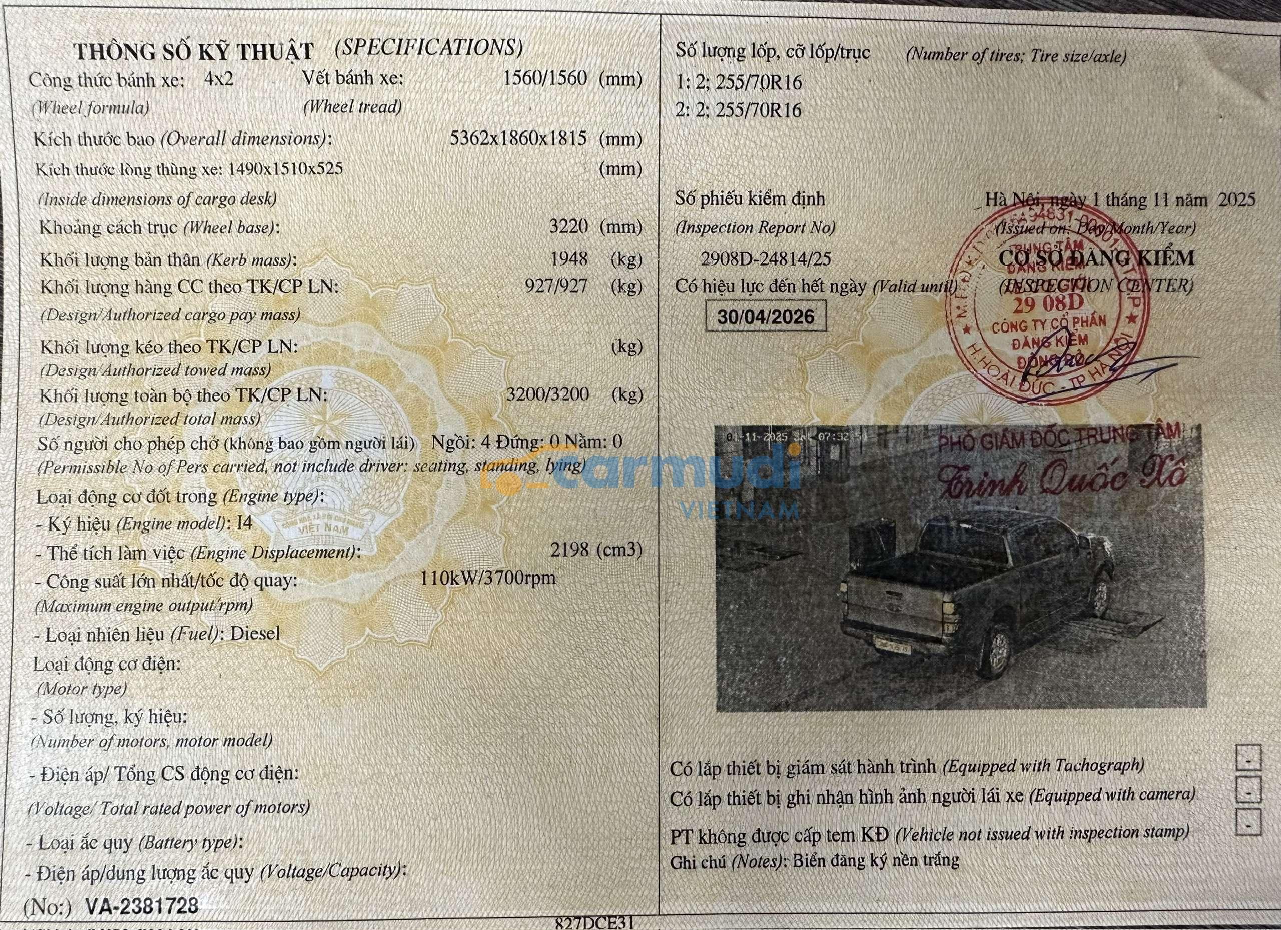 Trọng lượng không tải (kg)1948