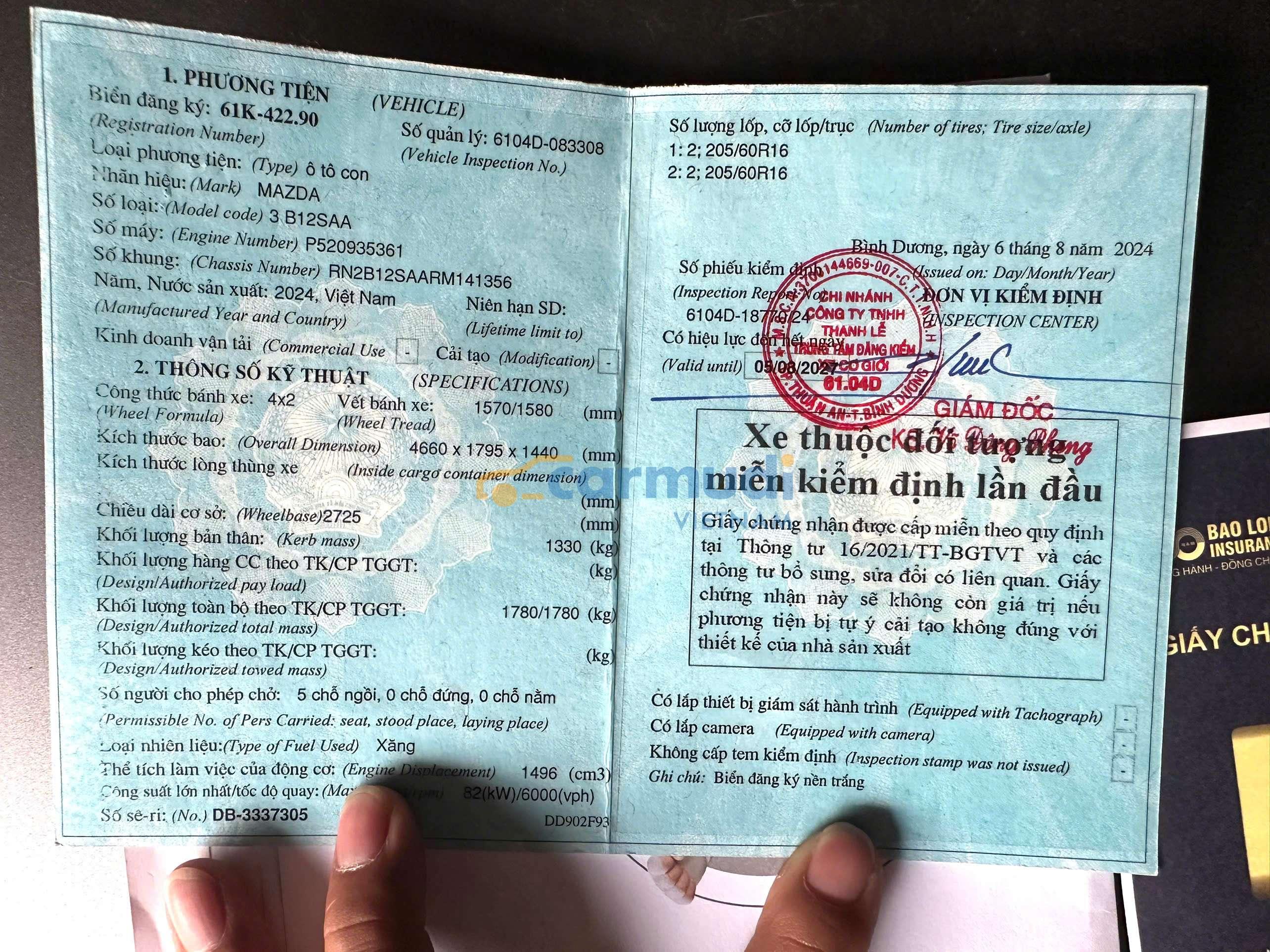 Mình đang cần bán gấp một chiếc xe mazda 3 đời cuối 2024 số tự động. Xanh đậm phadil. Xe chính chủ cá nhân mua mới 1 đời chủ cam kết không đâm đụng, không va chạm sơn zin 100%. Xe được trang bị full option.đề nổ start/stop, thắng tay điện tử, Màn hình zin theo xe, cam hành trình đầy đủ. Cam lùi, cảm biến quanh xe. Dán kim cách nhiệt cao cấp của mỹ 5M, thảm lót sàn, thảm taplo đầy đủ. 4 lốp zin theo xe, lốp sơ cua chưa chạm đất. đảm bảo chưa hề va quẹt đâm đụng, ko thủy kích, máy zin 100%, full lịch sử bảo dưỡng trong hãng, bao check test thoải mái. xe chính chủ cá nhân đứng tên, cà vẹt cầm tay, mua xong ra công chứng liền trong 15p, hỗ trợ rút hồ sơ cho người thiện chí.
