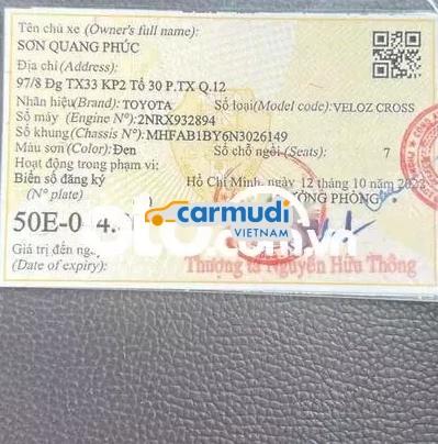 Toyota Veloz Cross màu đen, CVT sản xuất 2022, xe 7 chỗ rộng rãi. - ODO 207.665 km, xe chạy xăng. - Thiết kế hiện đại, nội thất tiện nghi. - SĐT liến hệ: ***. Anh chị em ai có nhu cầu mua sử dụng liên hệ cho mình nhé.
