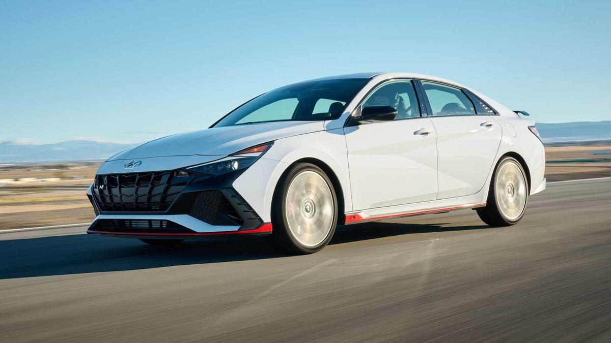 Sau đó là bản đầy đủ Elantra N. Đóng gói động cơ I-4 tăng áp 2.0 lít tạo ra 276 mã lực và 289 lb-ft, Elantra N có sẵn hộp số sàn 6 cấp hoặc ly hợp kép 8 cấp. Tăng tốc lên 60 dặm / giờ mất 5,9 giây với số tay và 5,1 giây với ly hợp kép. Dự kiến mức tiết kiệm nhiên liệu sẽ đạt 20/30 mpg với số sàn và 22/31 với số tự động. Hệ thống treo thích ứng, phanh lớn và cánh gió cốp là một trong những cải tiến về hiệu suất của Elantra N. Tất cả những điều trên kết hợp với nhau để làm cho Elantra N hóa thân thành xe thể thao giá rẻ tốt nhất.